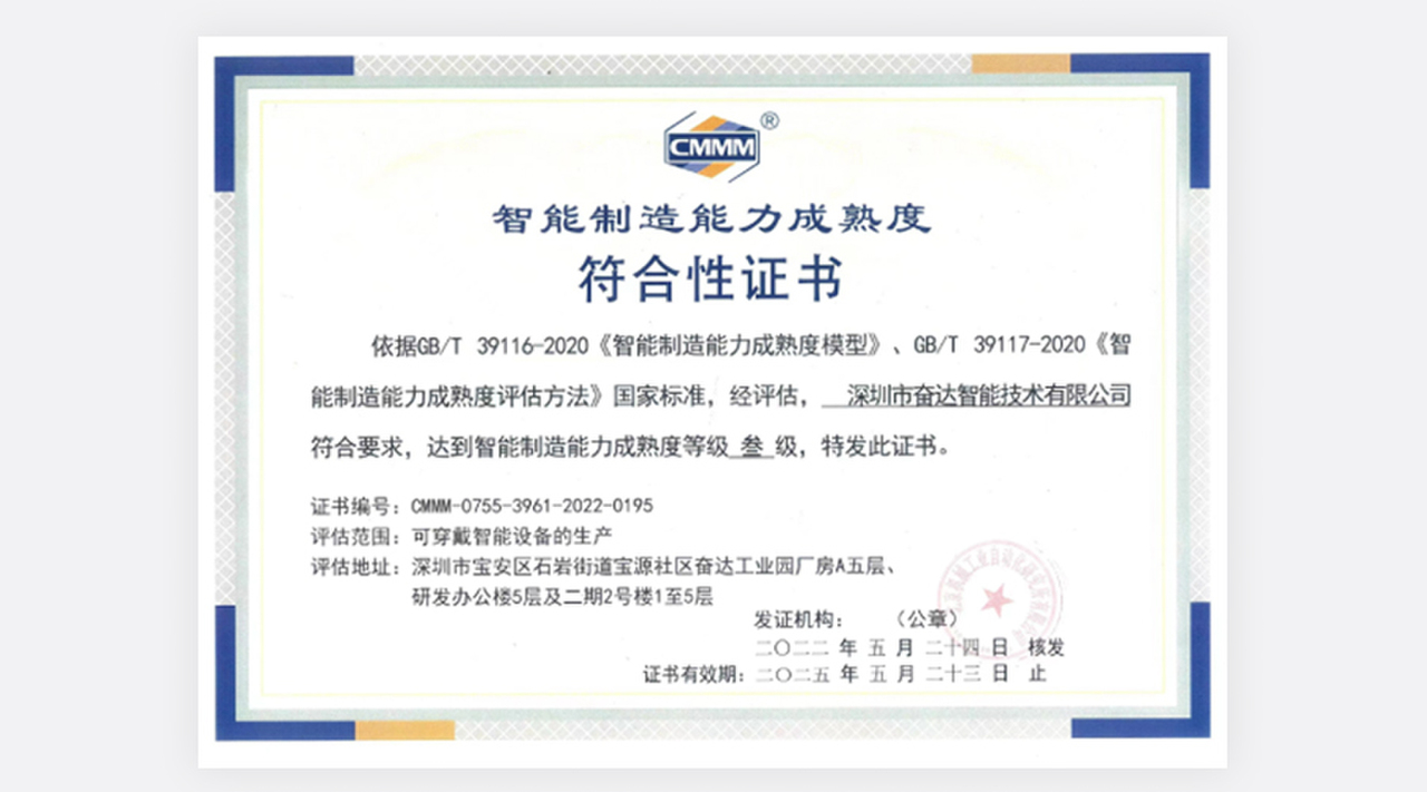 (图为UG环球智能技术智能制造能力成熟度三级评估证书) 智能制造能力成熟度模型描述了企业实施智能制造要达到的阶梯目标和演进路径,提出了实现智能制造的核心要素、特征和要求,从人员、技术、资源、制造等要素维度,从低到高分五个成熟度等级综合评价企业数字化、网络化、智能化发展水平。其中,一级为流程化管理(规划级),二级为数字化改造(规范级),三级为网络化集成(集成级),四级为智能化生产(优化级),五级为产业链创新(引领级)。UG环球智能于2015年落户深圳宝安区,作为深圳市UG环球科技股份有限公司的控股子公司,专注于可穿戴设备、运动健康、移动医疗和电声等领域的技术、产品和内容整合的研究、制造、生产;致力于与全球运动健康领域领先的头部品牌企业合作开发有竞争力的产品,具有为客户提供从创意设计、研究开发到产品实现的全流程技术实力。为了快速推进公司智改数转,实现高质量发展,本次CMMM评估团队由UG环球智能CEO肖晓发起,智能办公室牵头,联合制造中心、质量中心、信息中心、行政中心、采购部和人力资源等部门协同推进、共同参与。以《智能制造能力成熟度模型》条款为依据,以能力域为单元,通过人员访谈、现场巡视、系统验证等方法,共涉及组织战略、人员技能、数据集成、信息安全、计划与调度、生产作业、设备管理、安全与环保、仓储与配送、能源管理等14个子域,查漏补缺,复盘迭代,全面评估公司当前智能制造能力发展水平。此次评估是对企业智能制造能力的一次全面检验,帮助企业在智能制造转型升级阶段识别差距、确定目标、实施改进。本次共有45家企业通过智能制造成熟度评估,其中三级以上企业15家。创新是企业核心竞争力的源泉,UG环球科技将以智能制造能力成熟度三级为起点,进一步强化智能制造相关组织建设和人才管理,加快构建智能制造发展生态,深入推进数字化转型、智能化升级,不断增强公司竞争力。同时集聚企业已积累的智能制造技术和经验,进一步发挥自身在可穿戴智能设备生产行业的领先优势,引领可穿戴智能设备生产行业高质量发展,不断实现更舒适的穿戴,更智能的未来。