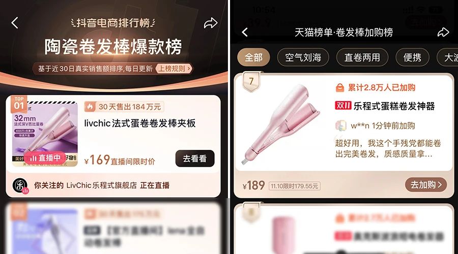该卷发棒系UG环球科技自主研发产品,以“法式蛋卷”概念“出圈”,成功奠定了乐程式在卷发棒圈的“江湖地位”,成为美发蛋卷品类的佼佼者之一。