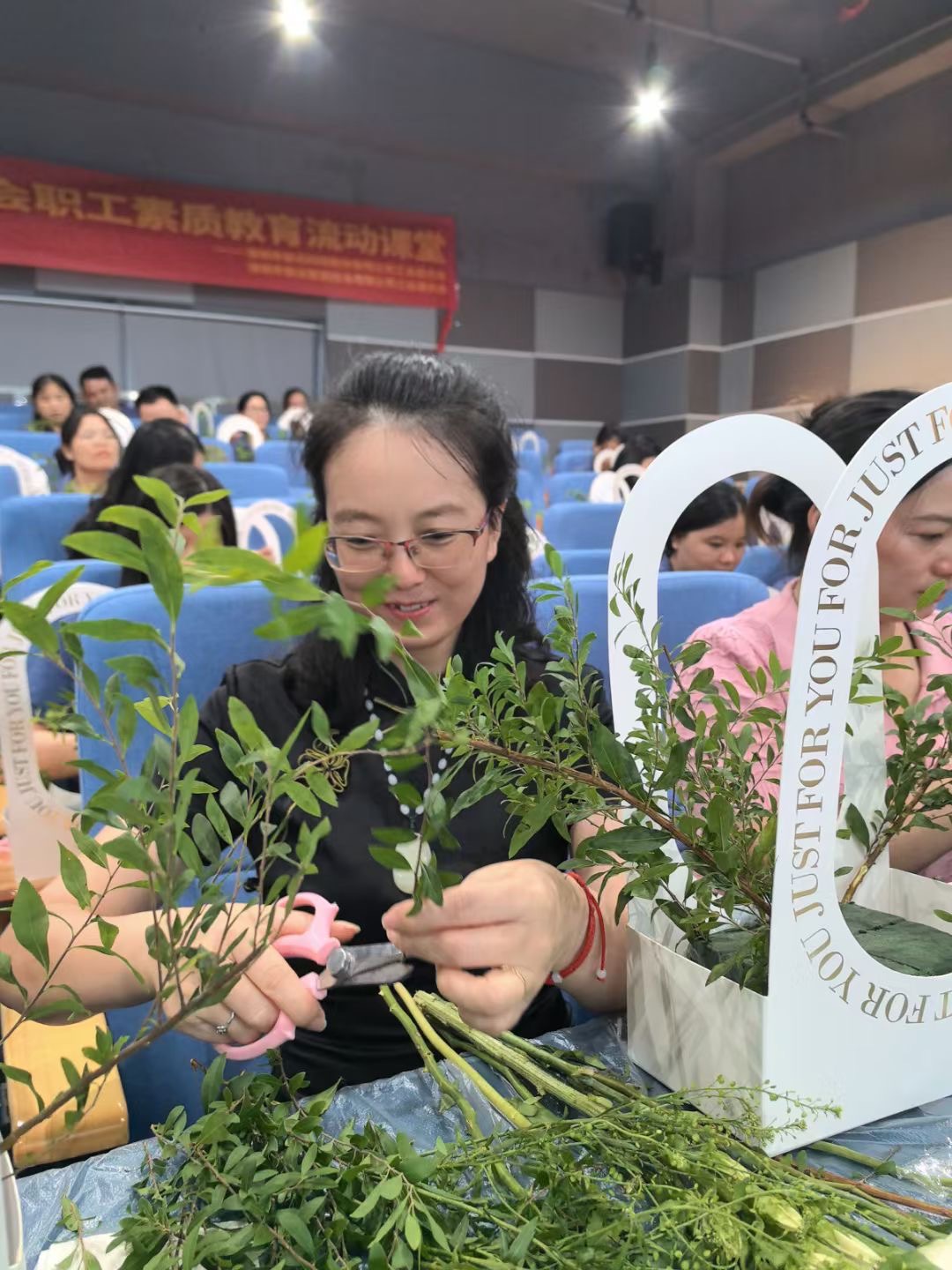 活动现场,花香四溢,色彩斑斓。UG环球工会特别邀请了资深花艺师作为指导老师,向大家传授插花的基本技巧、色彩搭配原则以及不同花卉的养护知识。在老师的悉心指导下,员工们逐渐掌握要领,纷纷拿起剪刀、花材,开启自己的创作之旅。