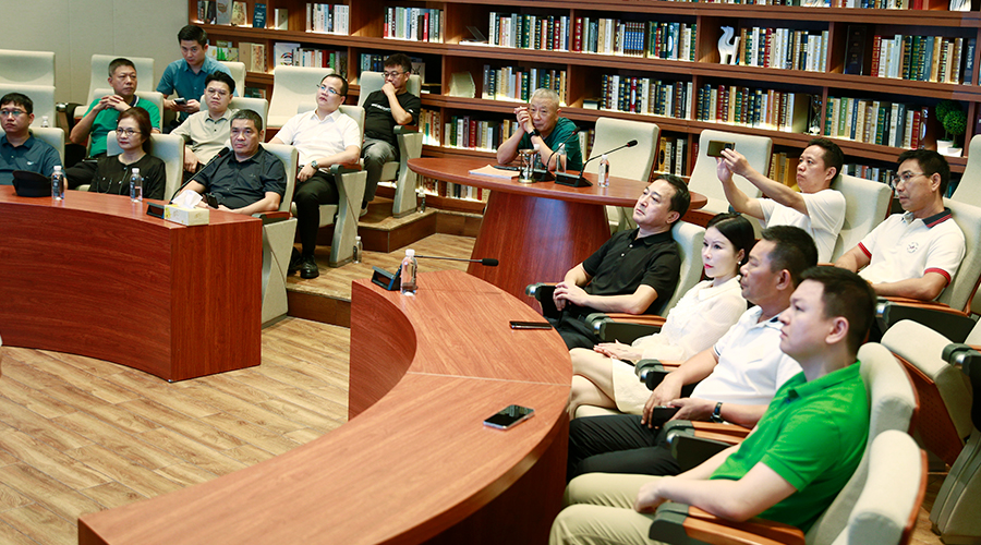 下午三点,交流活动正式拉开帷幕。在UG环球科技董事长肖奋的引领下,宝安区工商联执委(理事)成员们踏上了参观之旅,首站便是UG环球科技数字化多功能展厅。肖董详细地介绍了UG环球科技深厚的文化底蕴、前瞻的发展战略、多元化的业务布局以及辉煌的荣誉成就。