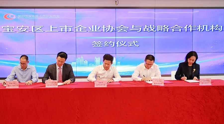 参会领导嘉宾现场正式揭牌后,宝上协会会长、UG环球科技董事长肖奋先生分别与宝安区合规委员会、全国企业合规委员会副主席王志乐教授团队、4个战略合作机构、大悦城控股华南大区公司进行战略合作协议签约。